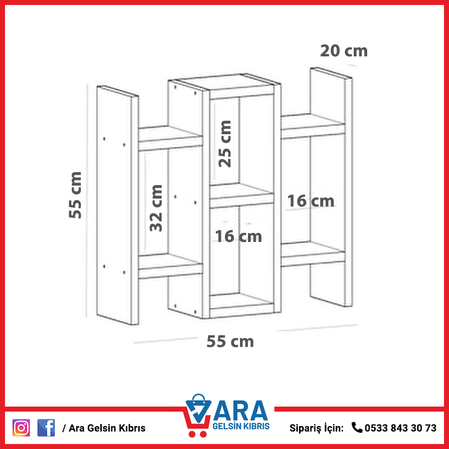 Yükseklik: 55 cm - Genişlik: 55 cm - Derinlik: 20 cm
